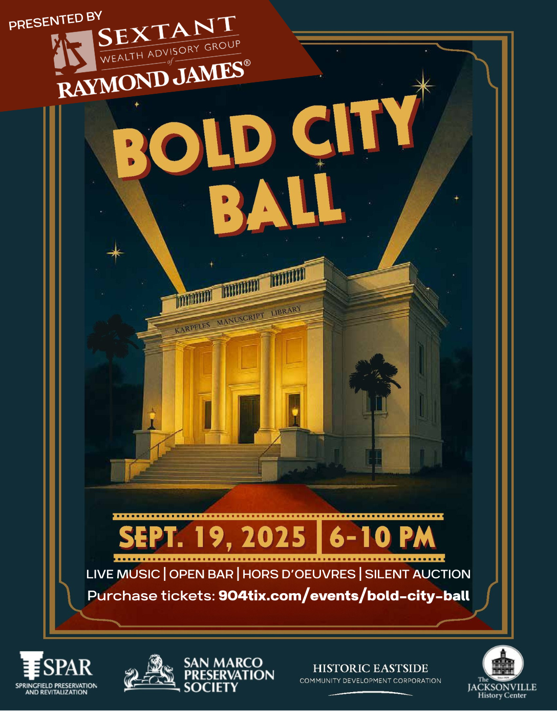 The hard work of neighborhood advocacy groups like Springfield Preservation and Revitalization, Historic Eastside CDC, San Marco Preservation Society, the Jacksonville History Center and others has transformed our city into the vibrant place we know and love. The Annual Bold City Ball recognizes and celebrates this work.